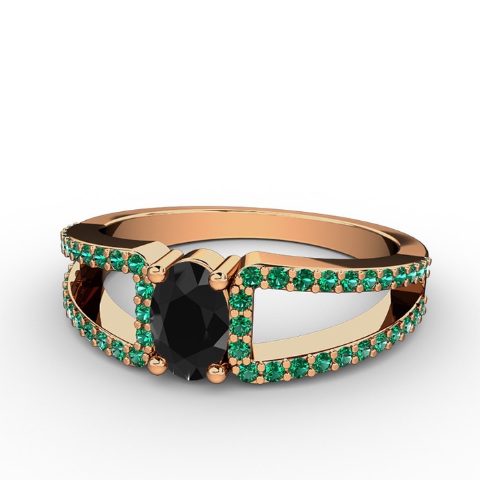 Siyah zirkon ve yeşil kuvars 14 ayar rose altın yüzük