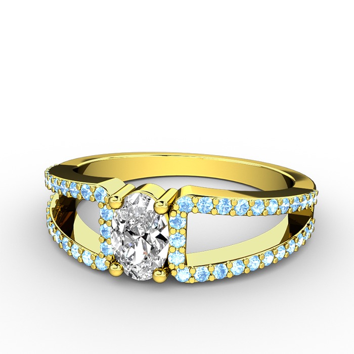 Swarovski ve akuamarin 14 ayar altın yüzük