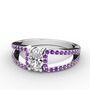 Swarovski ve ametist 8 ayar beyaz altın yüzük
