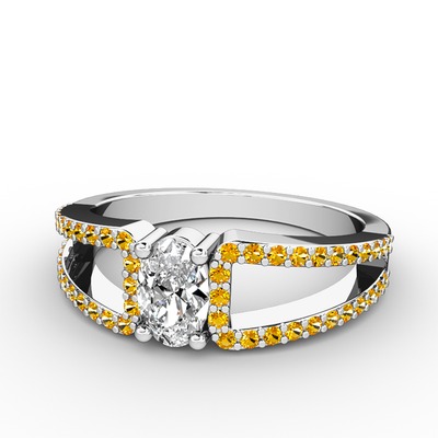 Swarovski ve sitrin 8 ayar beyaz altın yüzük