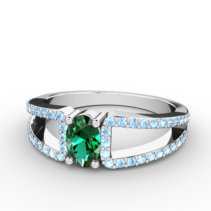Yeşil kuvars ve akuamarin 18 ayar beyaz altın yüzük