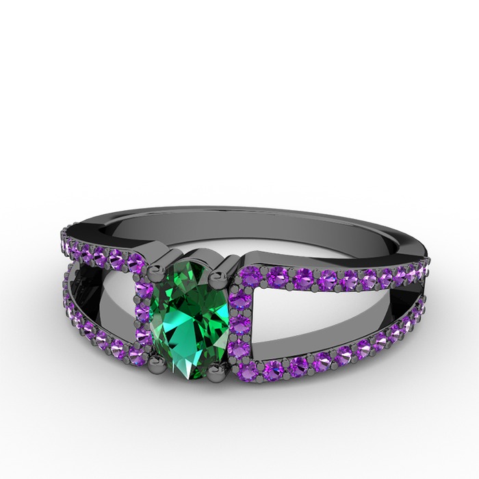 Yeşil kuvars ve ametist 925 ayar siyah rodyum kaplama gümüş yüzük