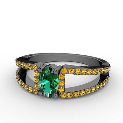 Yeşil kuvars ve sitrin 925 ayar siyah rodyum kaplama gümüş yüzük