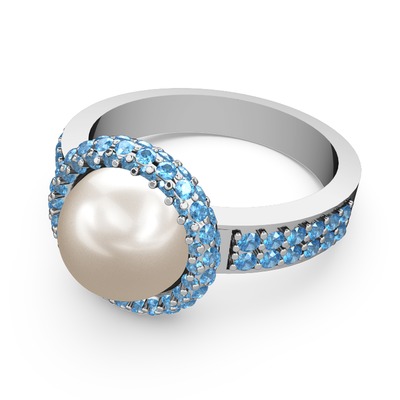 Akuamarin ve inci 8 ayar beyaz altın yüzük