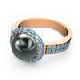 Akuamarin ve siyah inci 925 ayar rose altın kaplama gümüş yüzük
