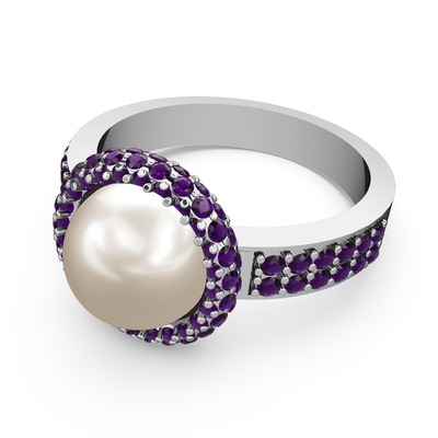 Ametist ve inci 14 ayar beyaz altın yüzük