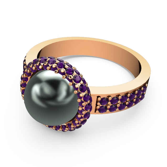 Ametist ve siyah inci 925 ayar rose altın kaplama gümüş yüzük