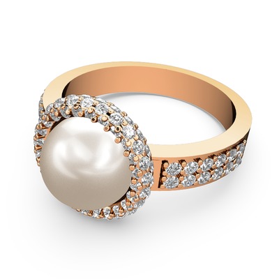 Beyaz zirkon ve inci 8 ayar rose altın yüzük