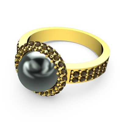 Dumanlı kuvars ve siyah inci 18 ayar altın yüzük