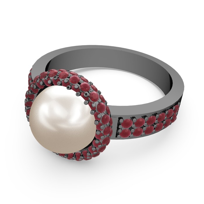 Kök yakut ve inci 925 ayar siyah rodyum kaplama gümüş yüzük