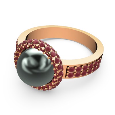 Kök yakut ve siyah inci 14 ayar rose altın yüzük