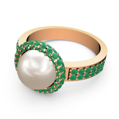 Kök zümrüt ve inci 14 ayar rose altın yüzük