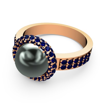Lab safir ve siyah inci 18 ayar rose altın yüzük