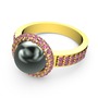 Pembe kuvars ve siyah inci 14 ayar altın yüzük