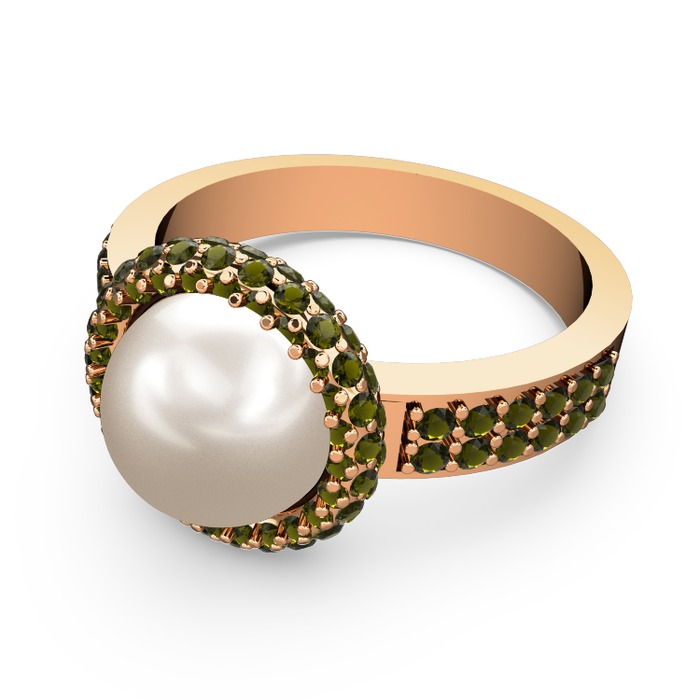Peridot ve inci 925 ayar rose altın kaplama gümüş yüzük
