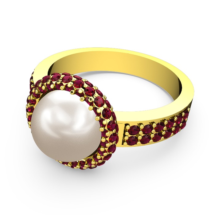 Rodolit garnet ve inci 14 ayar altın yüzük