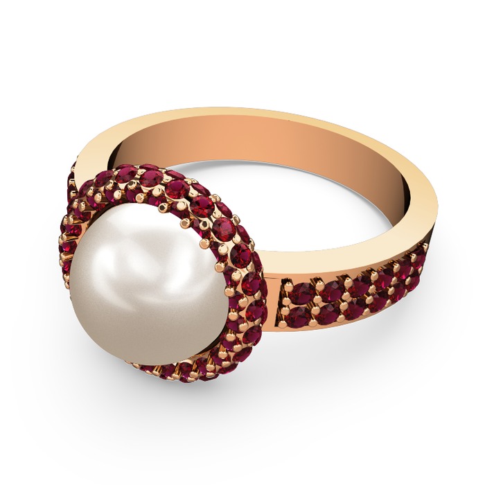 Rodolit garnet ve inci 925 ayar rose altın kaplama gümüş yüzük