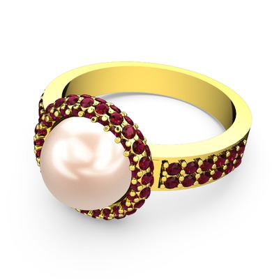 Rodolit garnet ve pembe inci 8 ayar altın yüzük