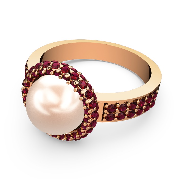 Rodolit garnet ve pembe inci 925 ayar rose altın kaplama gümüş yüzük