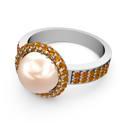 Sitrin ve pembe inci 8 ayar beyaz altın yüzük