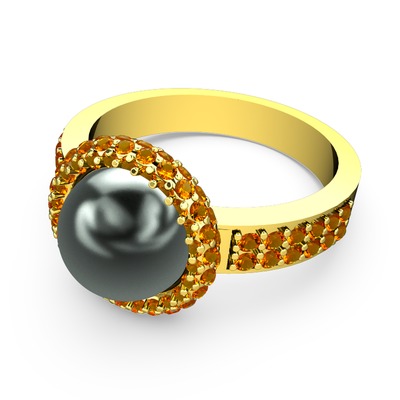 Sitrin ve siyah inci 18 ayar altın yüzük