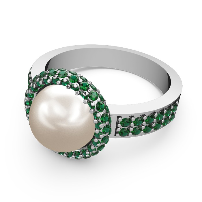 Yeşil kuvars ve inci 18 ayar beyaz altın yüzük