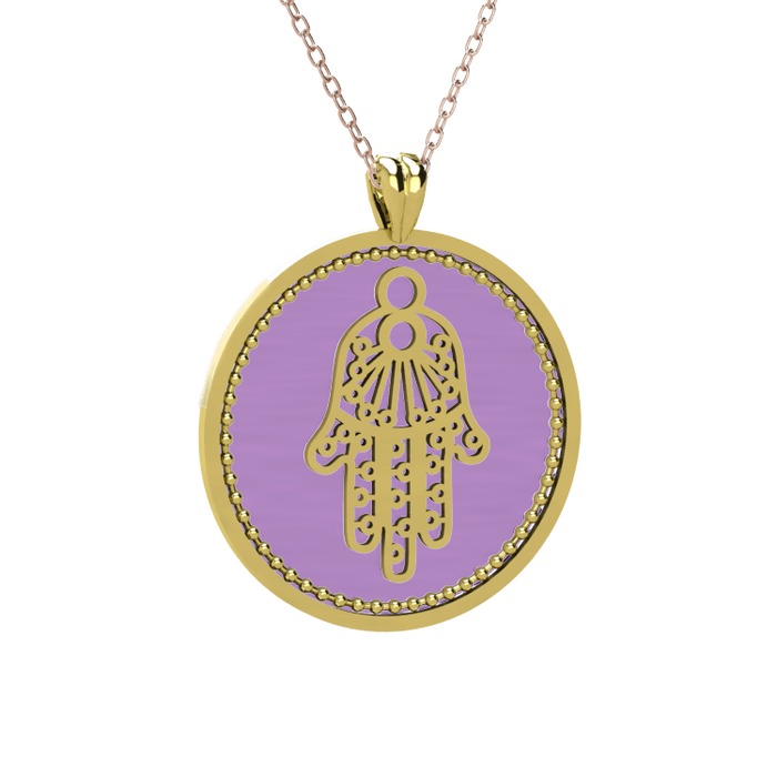 14 ayar altın kolye (Menekşe mineli, 40 cm rose altın rolo zincir)