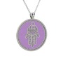 18 ayar beyaz altın kolye (Menekşe mineli, 40 cm gümüş rolo zincir)