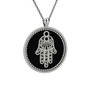 18 ayar beyaz altın kolye (Siyah mineli, 40 cm gümüş rolo zincir)
