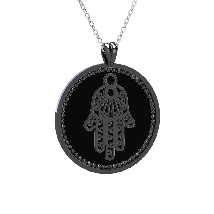 925 ayar siyah rodyum kaplama gümüş kolye (Siyah mineli, 40 cm beyaz altın rolo zincir)