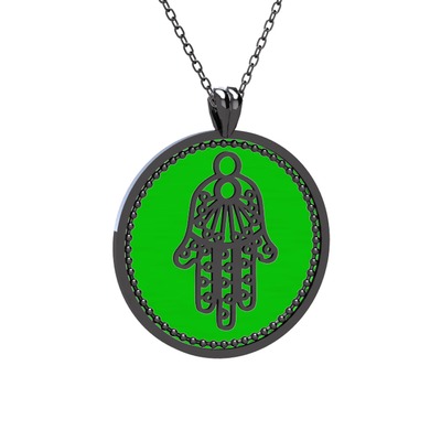 925 ayar siyah rodyum kaplama gümüş kolye (Yeşil mineli, 40 cm gümüş rolo zincir)