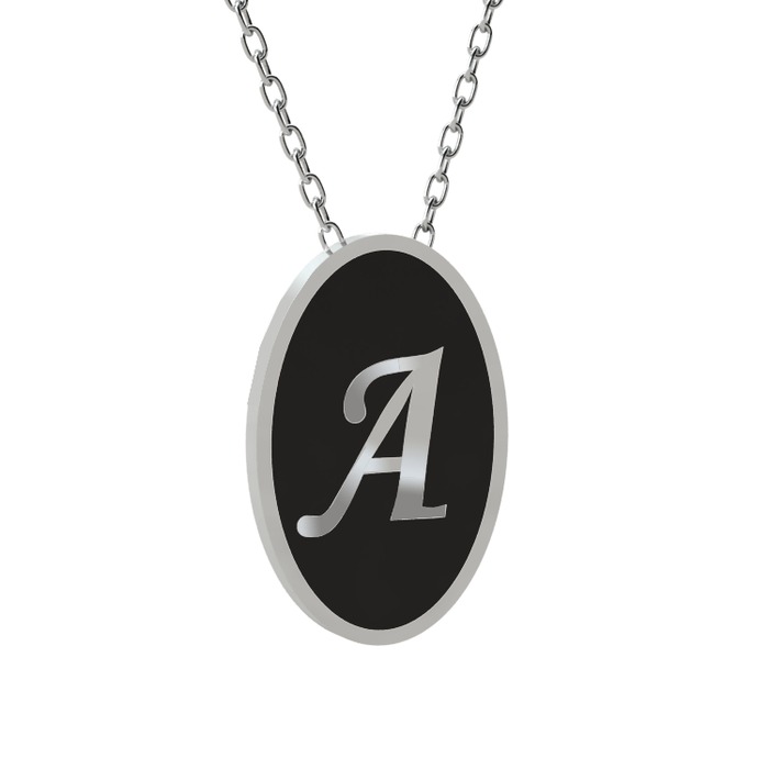 14 ayar beyaz altın kolye (Siyah mineli, 40 cm beyaz altın rolo zincir)