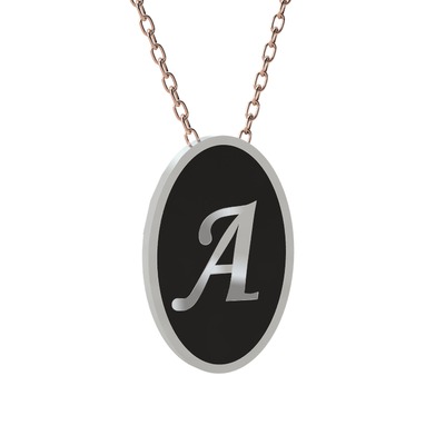 14 ayar beyaz altın kolye (Siyah mineli, 40 cm rose altın rolo zincir)