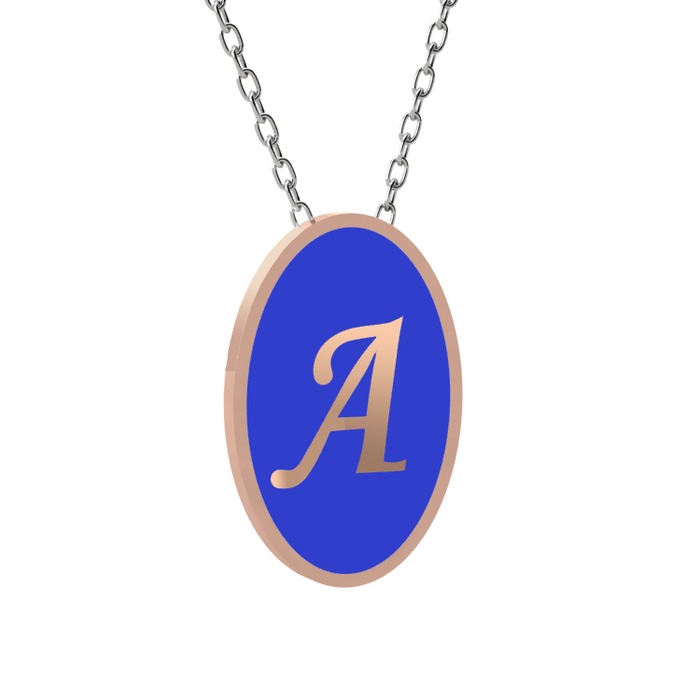 14 ayar rose altın kolye (Lacivert mineli, 40 cm gümüş rolo zincir)