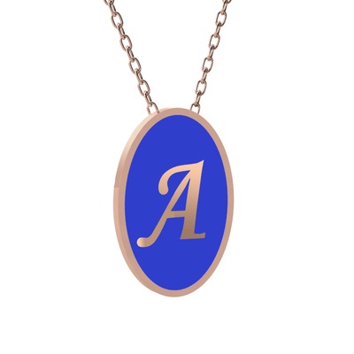 14 ayar rose altın kolye (Lacivert mineli, 40 cm rose altın rolo zincir)