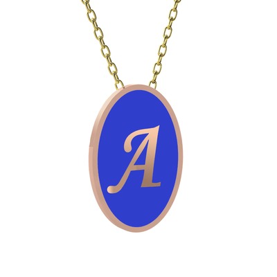 18 ayar rose altın kolye (Lacivert mineli, 40 cm altın rolo zincir)