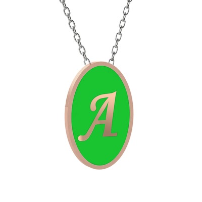 8 ayar rose altın kolye (Yeşil mineli, 40 cm beyaz altın rolo zincir)