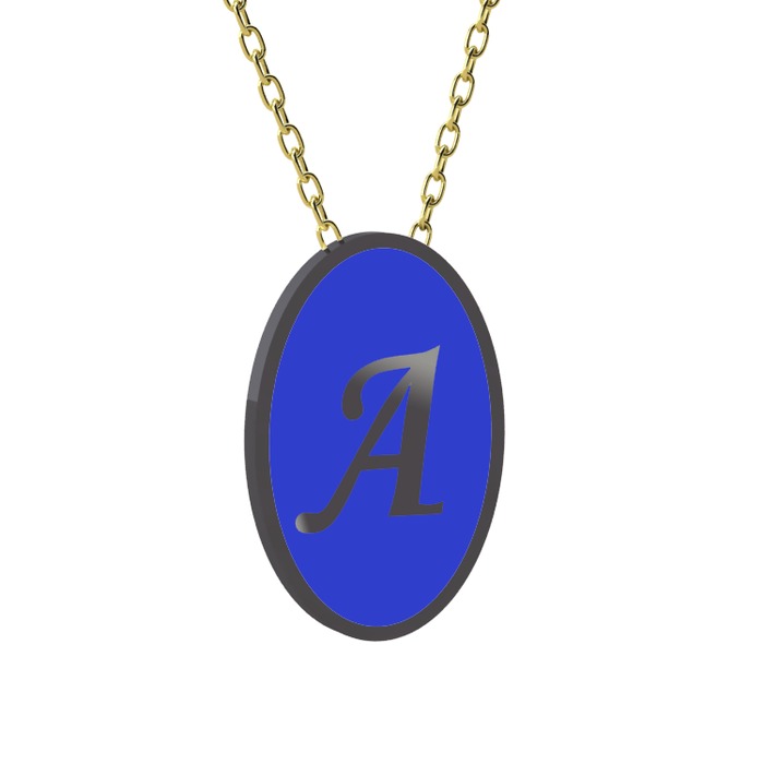 925 ayar siyah rodyum kaplama gümüş kolye (Lacivert mineli, 40 cm altın rolo zincir)