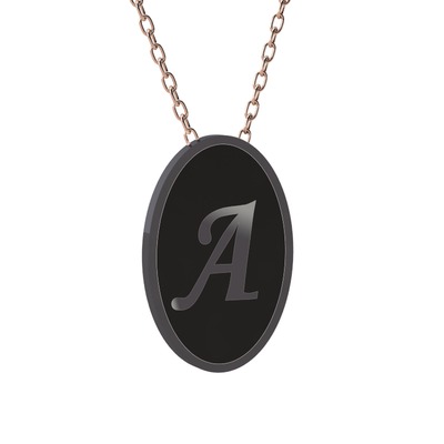 925 ayar siyah rodyum kaplama gümüş kolye (Siyah mineli, 40 cm rose altın rolo zincir)