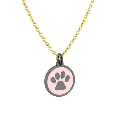 925 ayar siyah rodyum kaplama gümüş kolye (Pastel pembe mineli, 40 cm altın rolo zincir)