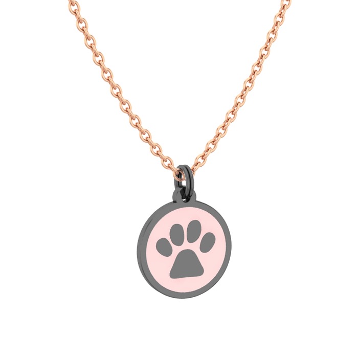 925 ayar siyah rodyum kaplama gümüş kolye (Pastel pembe mineli, 40 cm gümüş rolo zincir)