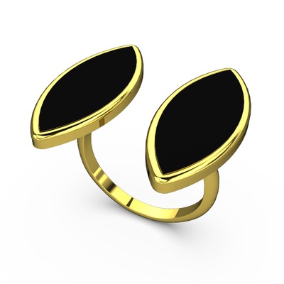 925 ayar altın kaplama gümüş yüzük (Siyah mineli)