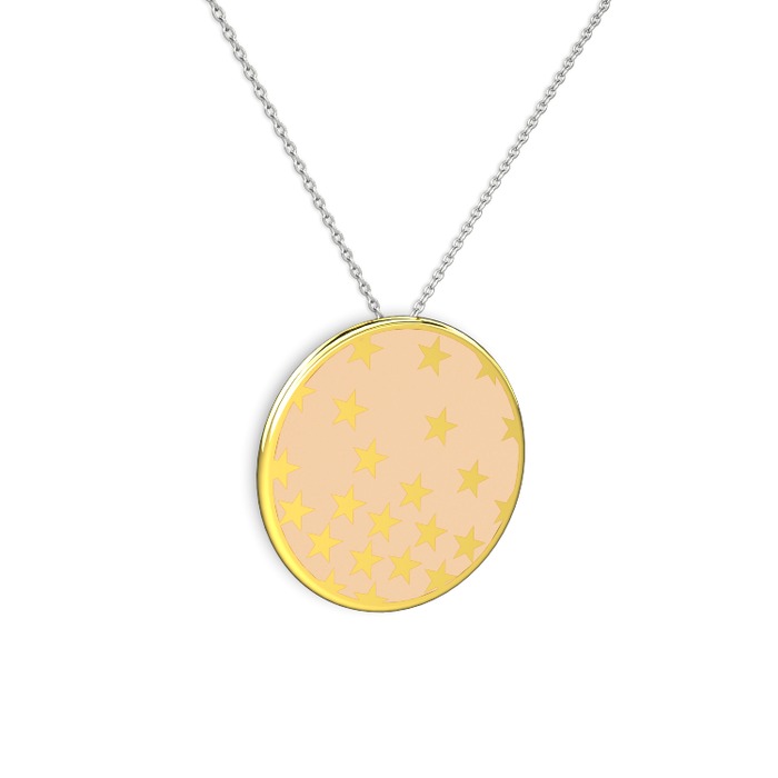 14 ayar altın kolye (Ekru mineli, 40 cm beyaz altın rolo zincir)