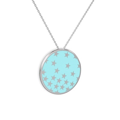 14 ayar beyaz altın kolye (Pastel mavi mineli, 40 cm beyaz altın rolo zincir)