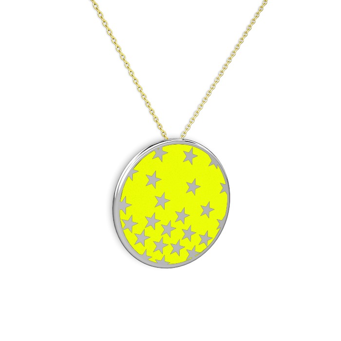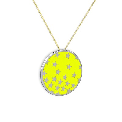14 ayar beyaz altın kolye (Sarı mineli, 40 cm gümüş rolo zincir)