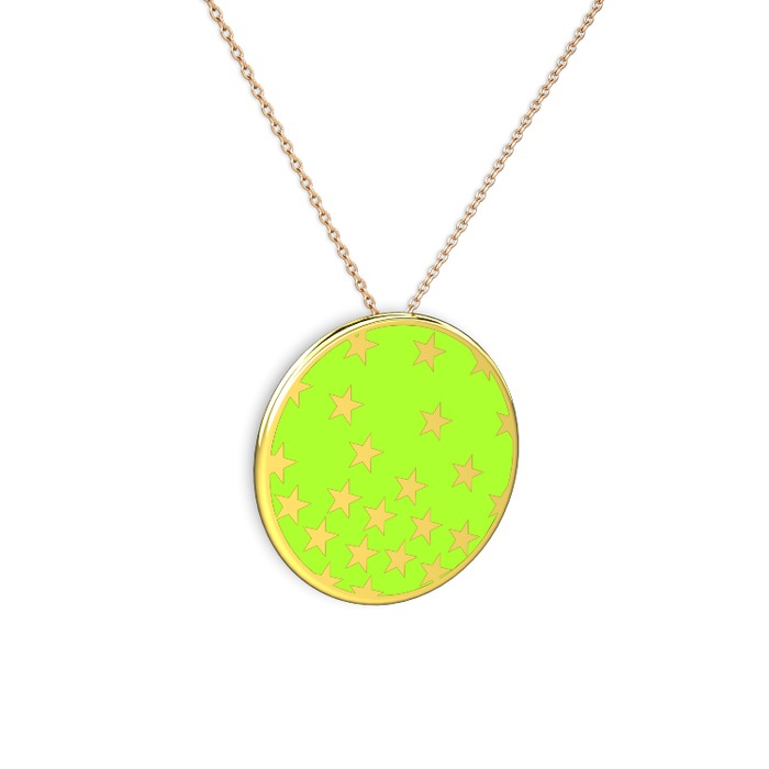 18 ayar altın kolye (Neon yeşil mineli, 40 cm rose altın rolo zincir)