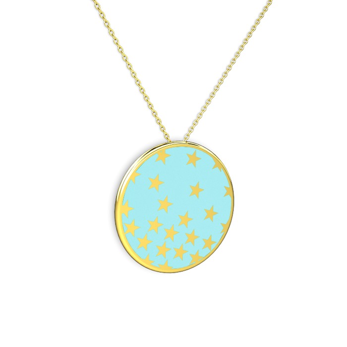 18 ayar altın kolye (Pastel mavi mineli, 40 cm altın rolo zincir)