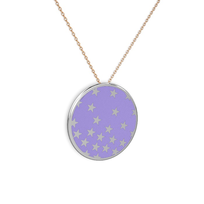 18 ayar beyaz altın kolye (Menekşe mineli, 40 cm rose altın rolo zincir)