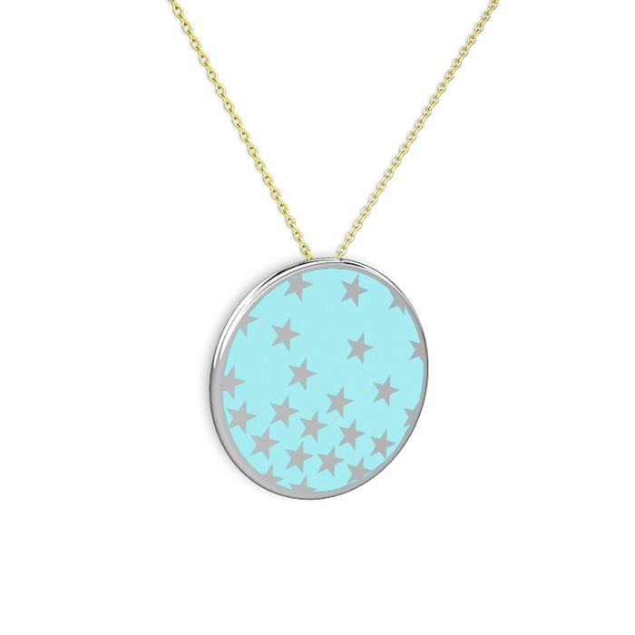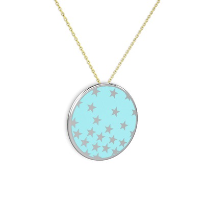 18 ayar beyaz altın kolye (Pastel mavi mineli, 40 cm altın rolo zincir)