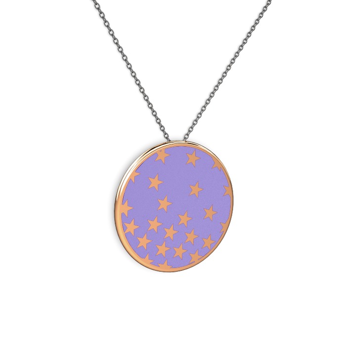 18 ayar rose altın kolye (Menekşe mineli, 40 cm gümüş rolo zincir)